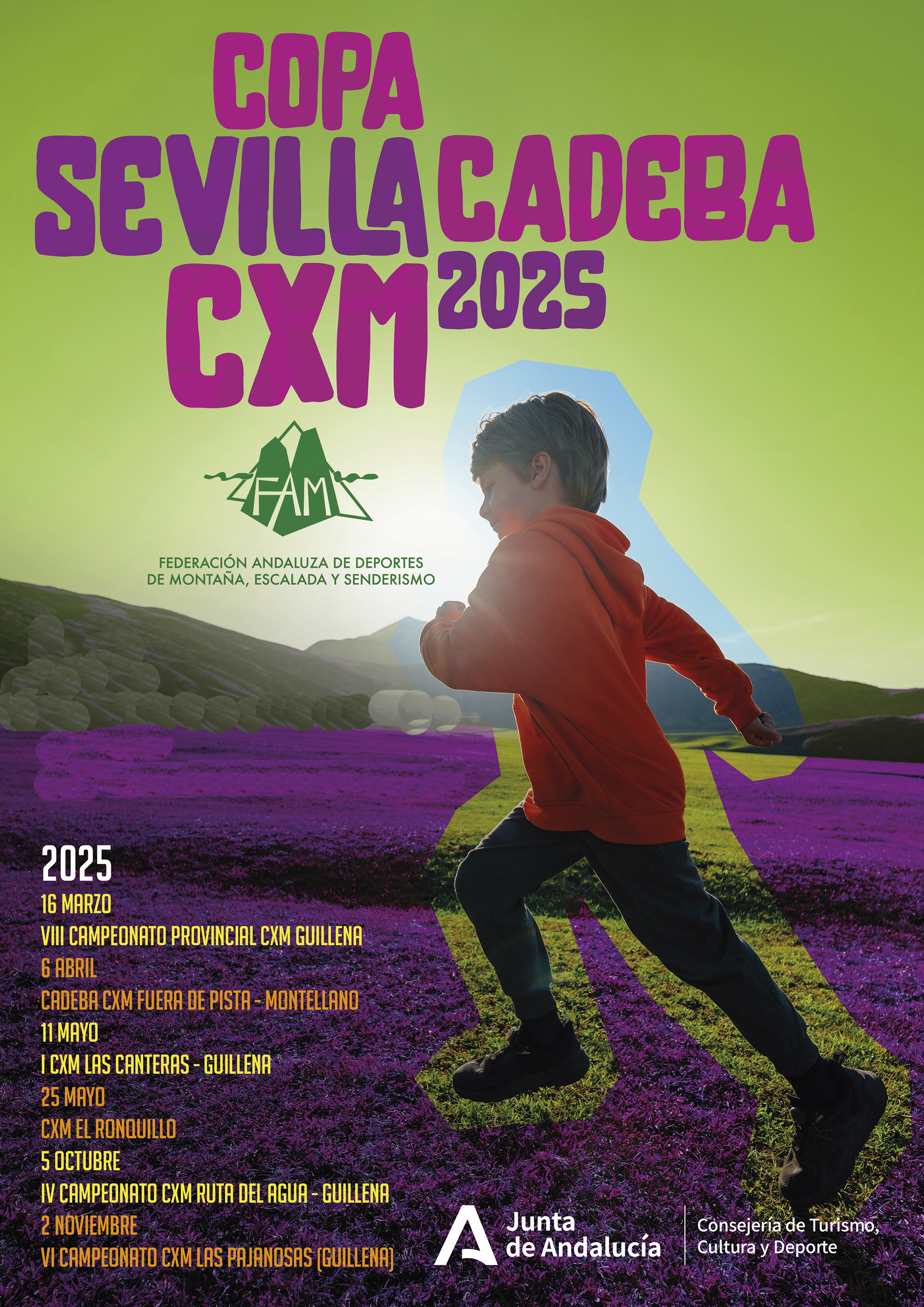 VI circuito de carreras por montaña, para la promoción del deporte de edad escolar. Pruebas de la copa provincial de sevilla CxM CADEBA 2025, incluidas dentro del campeonato de Andalucia y donde se seleccionará a la selección Sevillana, que nos representará en la fase final de dicho campeonato. Las prueba se disputarán: