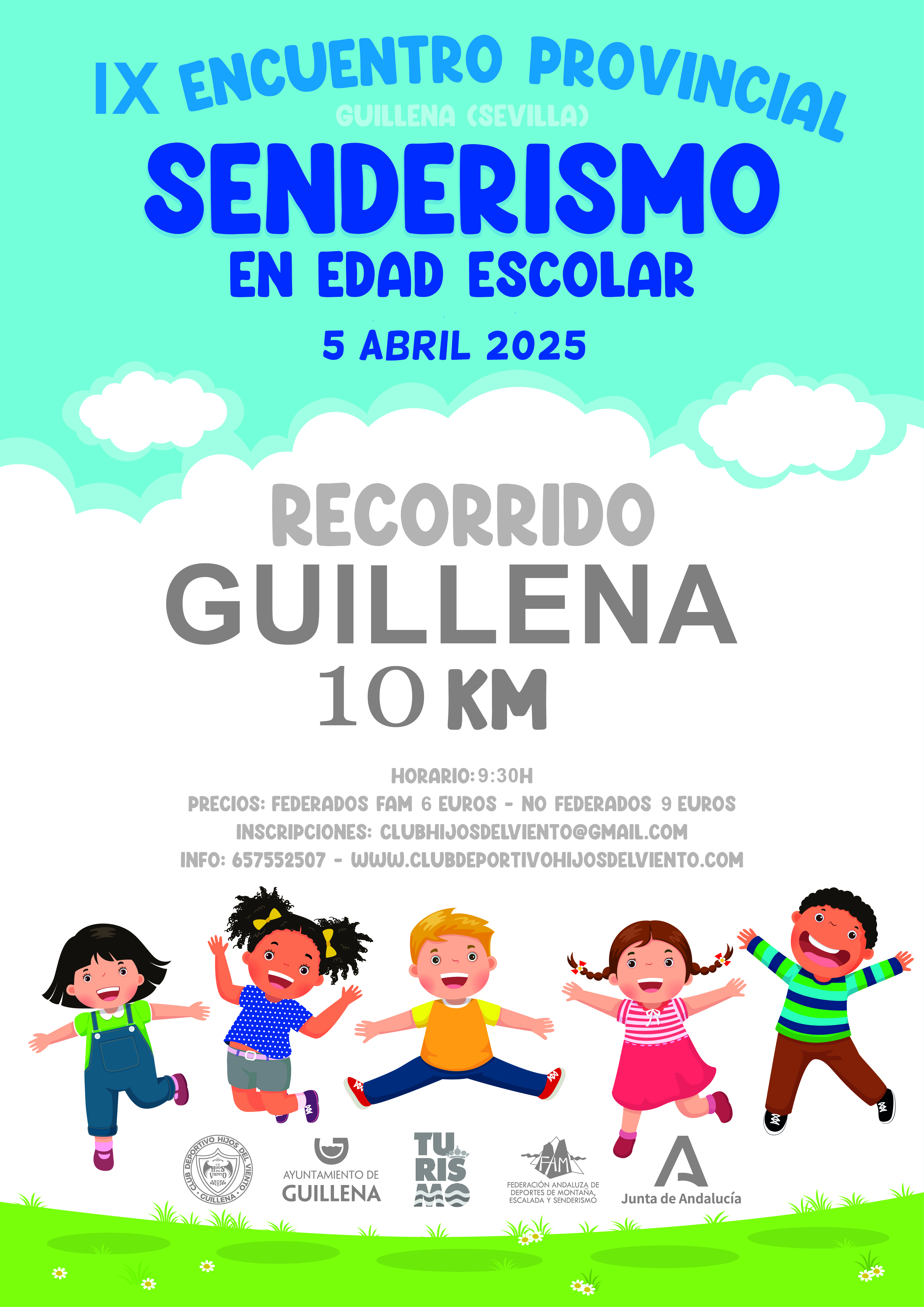 Inscripciones: https://inscripciones.tecnocrono.com/inscripcion/ix-encuentro-provincial-de-senderismo-en-edad-escolar-guillena-2025/